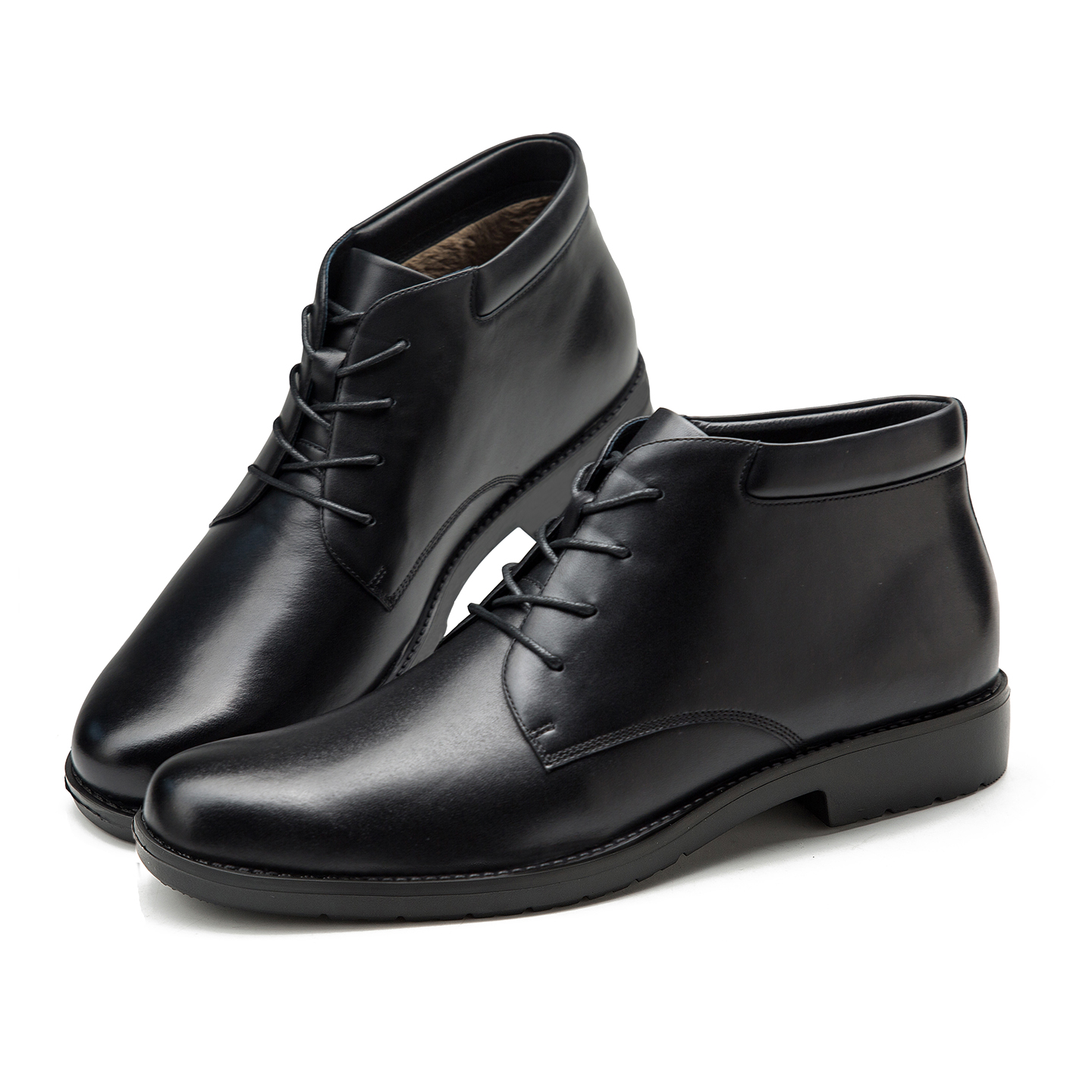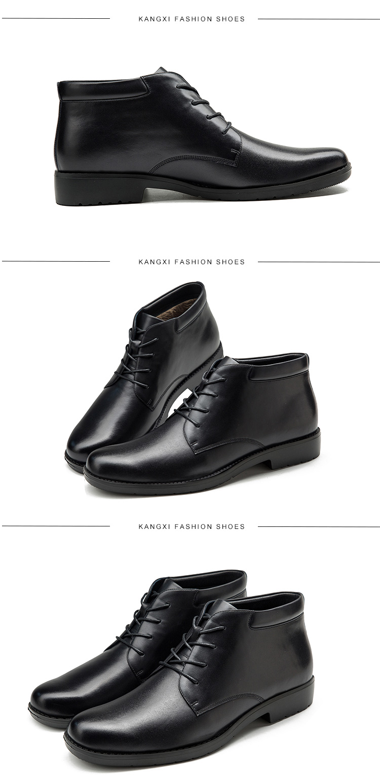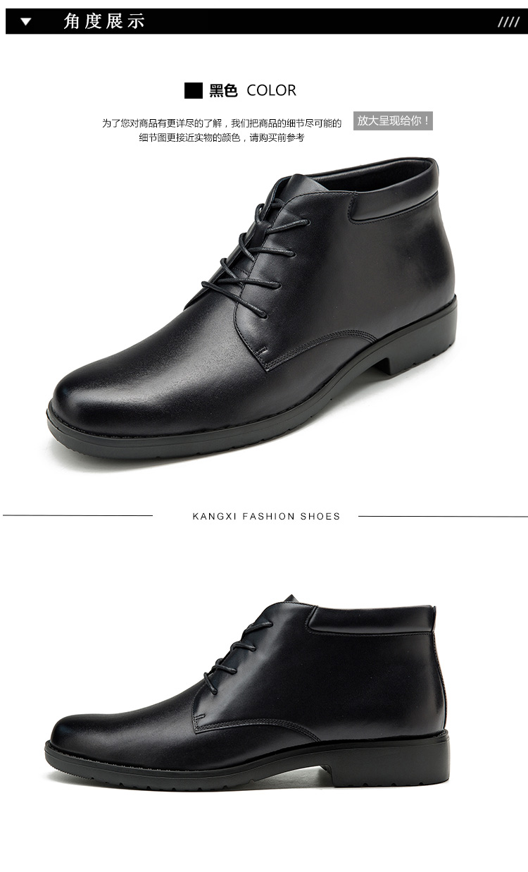 康犀kangxi商务风男士黑色皮靴冬季系带短靴百搭低跟商务休闲棉鞋