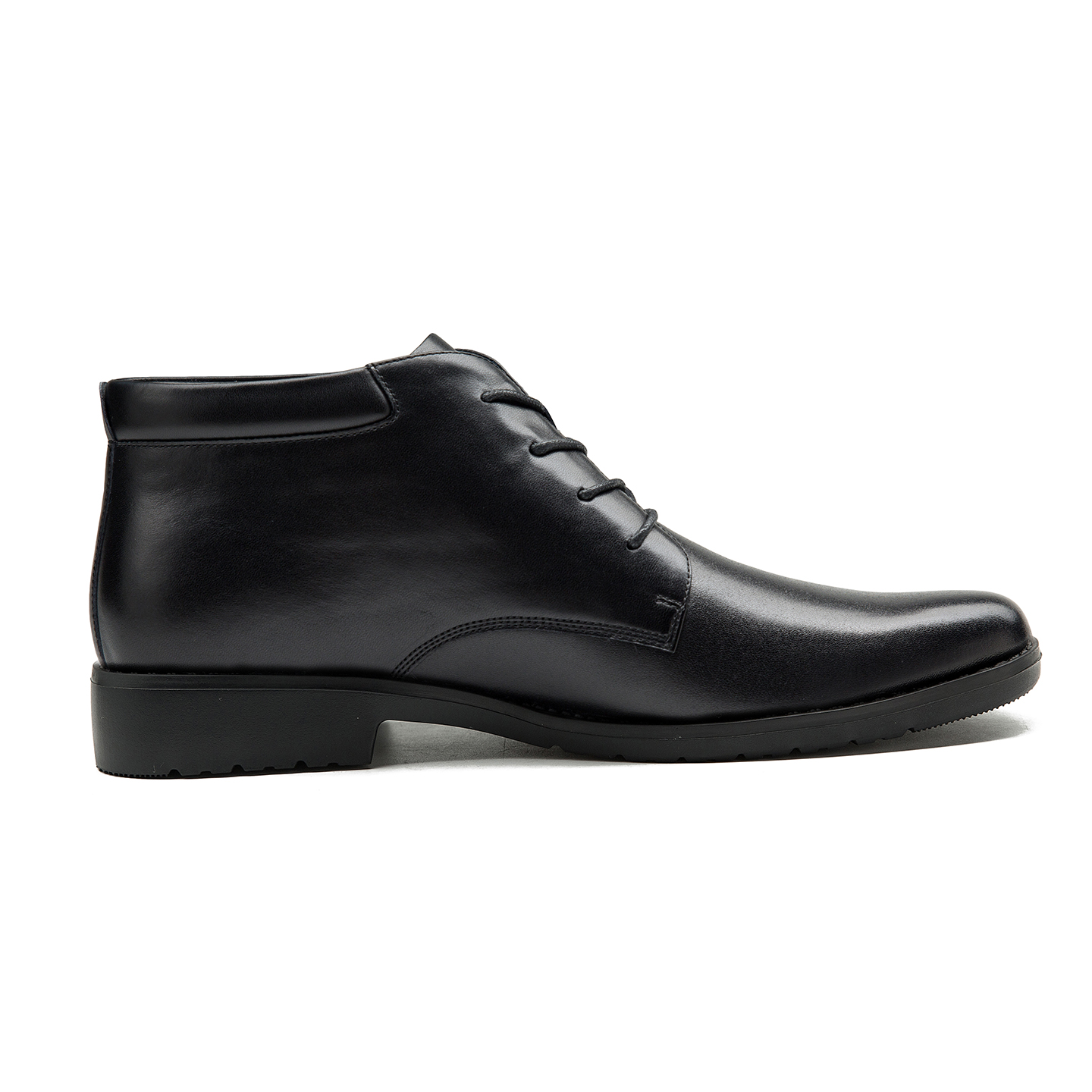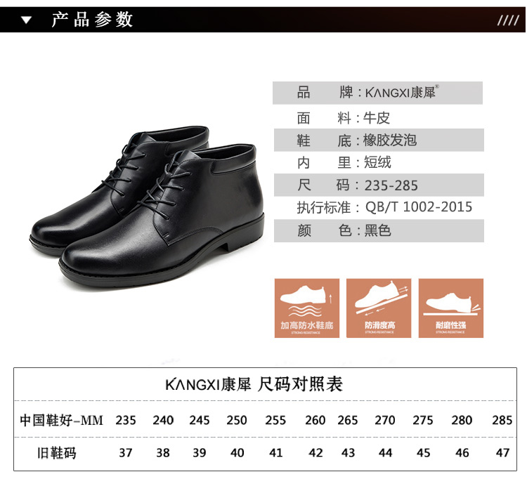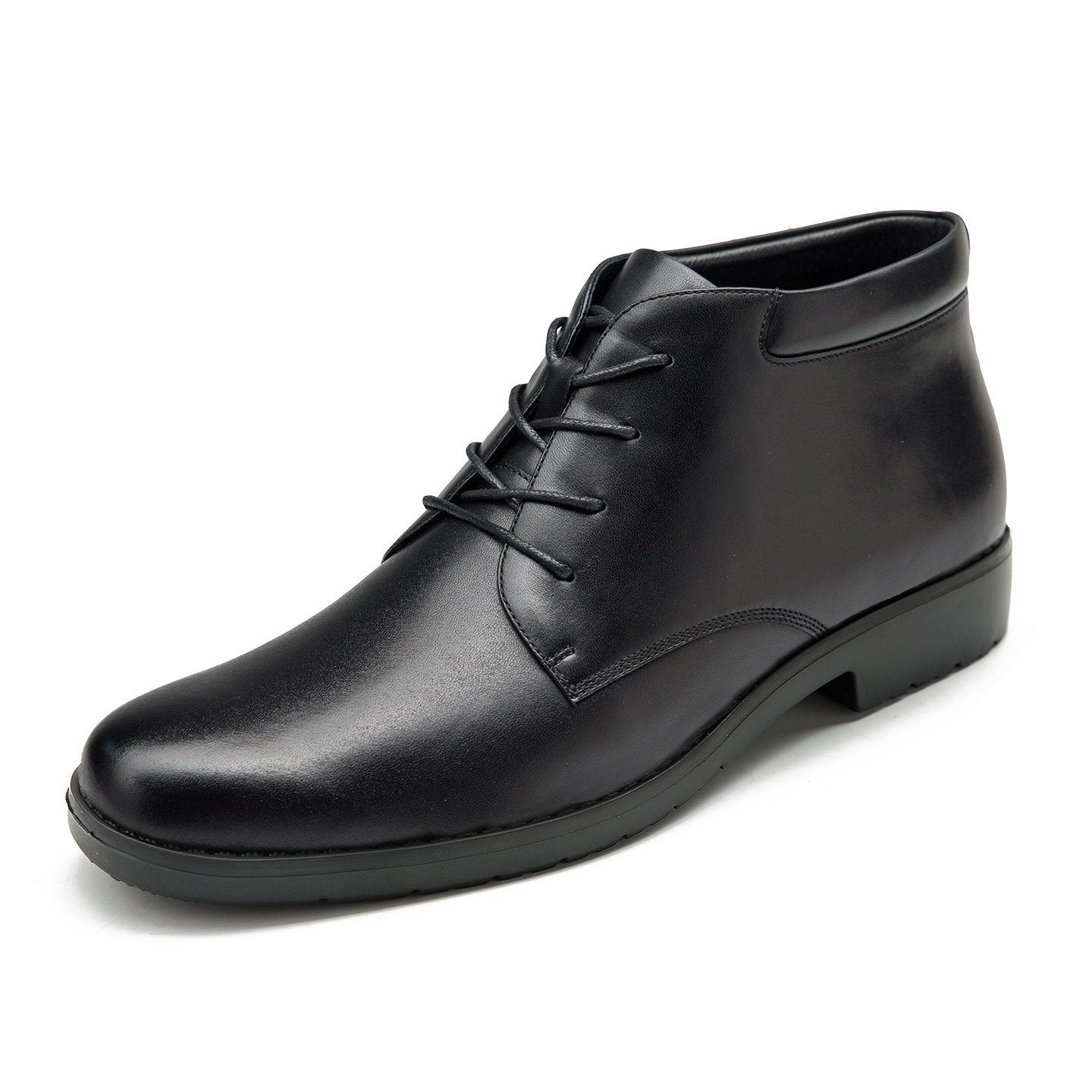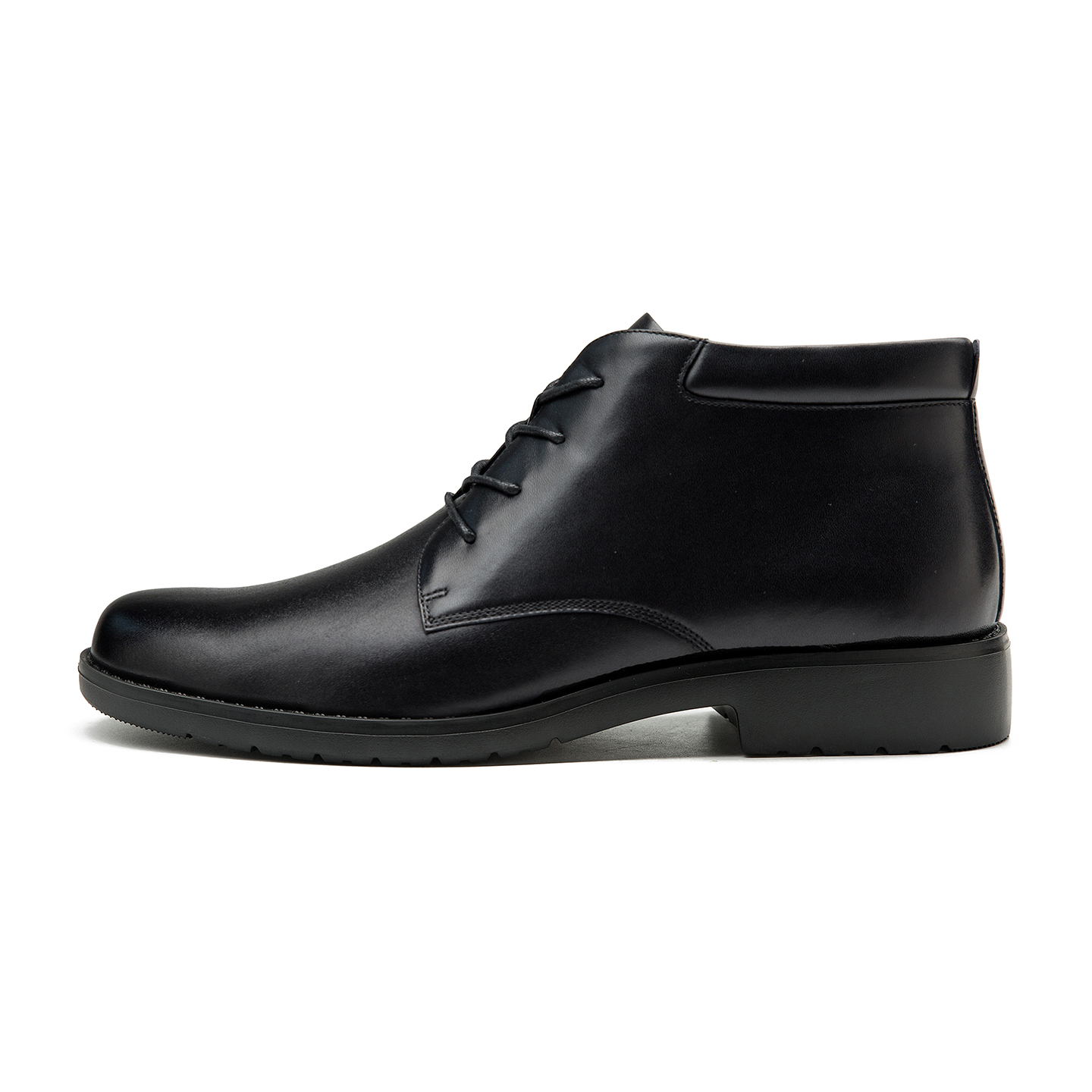 康犀kangxi商务风男士黑色皮靴冬季系带短靴百搭低跟商务休闲棉鞋