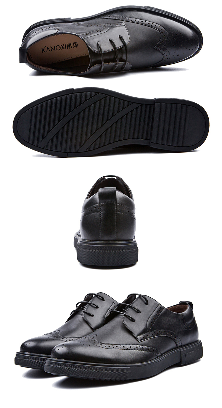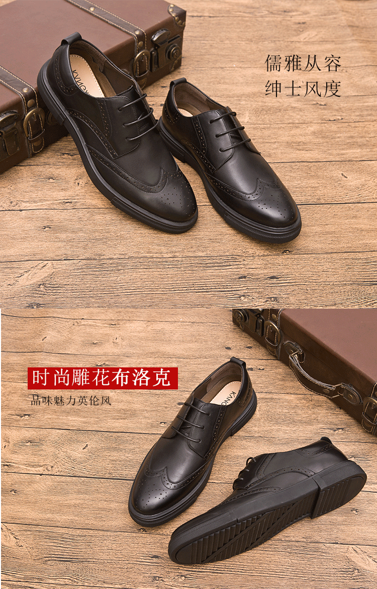 kangxi康犀布洛克雕花英伦风系带休闲鞋头层牛皮配商务单鞋子男式