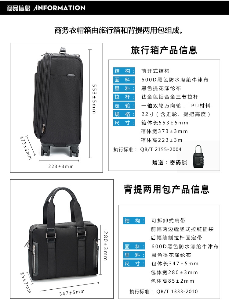 康犀kangxi背提两用包拉杆旅行箱衣帽箱